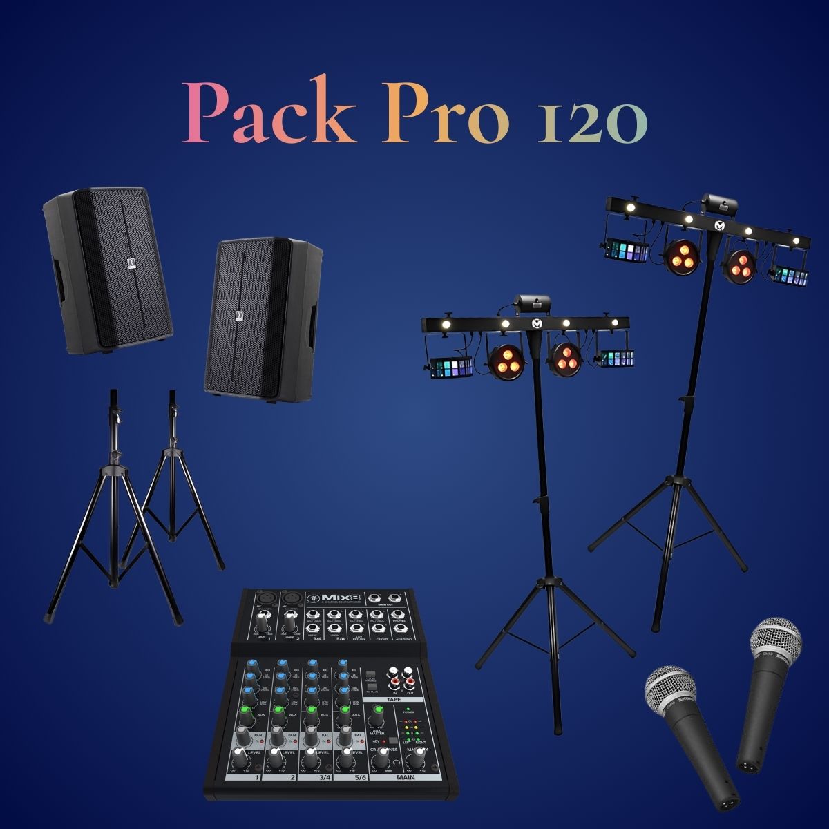 Pack Pro 120 – Location de matériel professionnel son et lumière pour des événements jusqu’à 120 invités